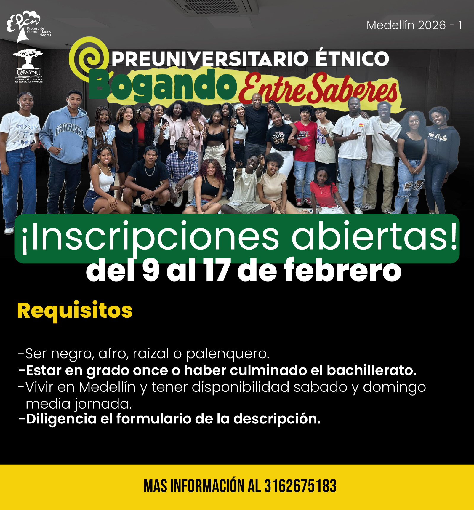 Preinscripción Preuniversitario Étnico Bogando entre Saberes – PCN Medellín y Valle de Aburrá